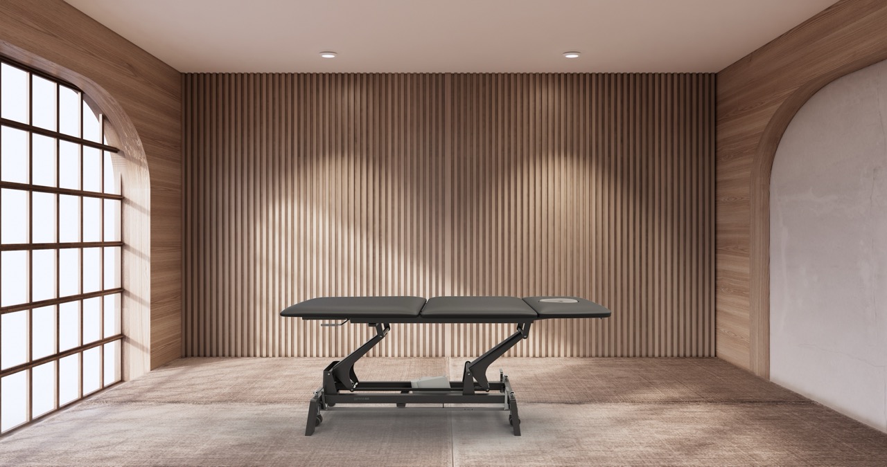 Dreiteilige Behandlungsliege in fester Konfiguration mit Carbon Black frame,