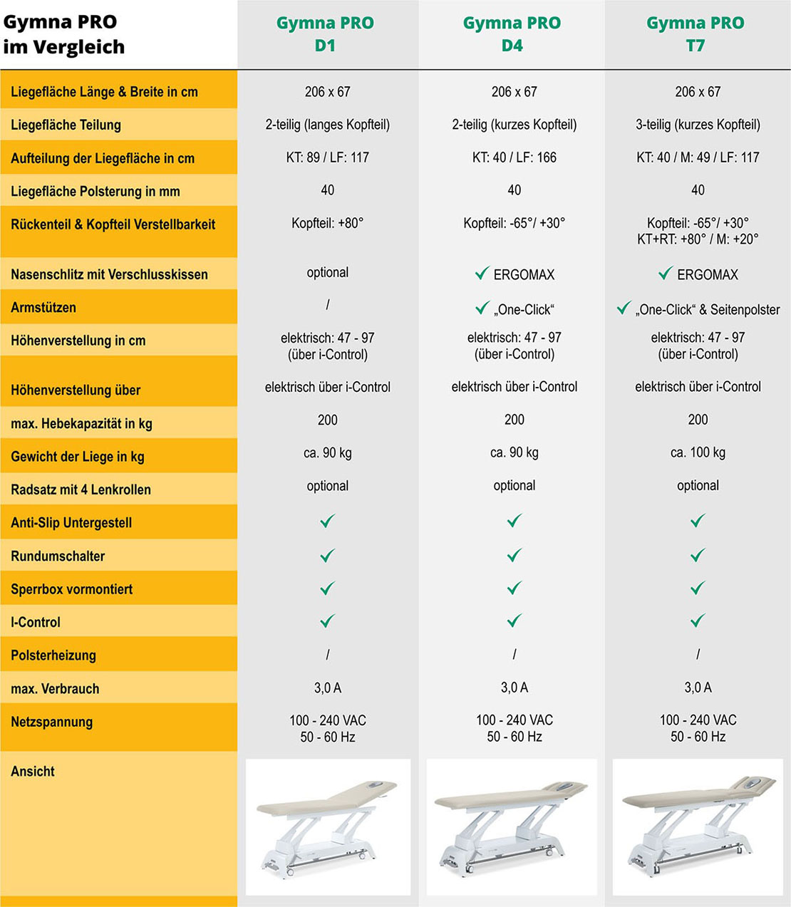 Konzentrieren wir uns nun auf das Wesentliche: Ihre Praxis und Ihre Patienten. Gymna Behandlungsliegen sind nicht einfach nur Massagebetten oder Liegen, sie sind präzise auf den professionellen Einsatz zugeschnitten und bieten Ihnen eine Vielzahl von Funktionen und Polstereinstellmöglichkeiten, wie z.B. Polsterheizung, elektrische Höhenverstellung, Dachstellung, klappbare Seitenpolster, Sitzposition und Sicherheitsausstattungen. Ganz zu schweigen von unserem Fokus auf Ergonomie. Sie und Ihre Patienten verdienen nur das Beste und genau das bieten wir.